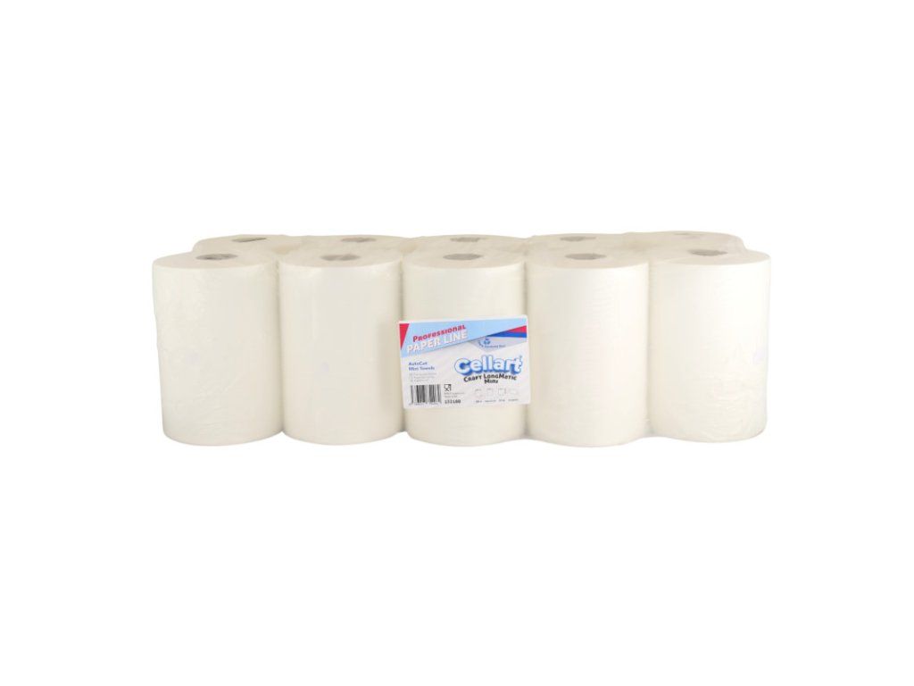 132180 – Utierka CELLART Craft LongMatic Mini, 180m (10ks) Papierové utierky LongMatic Mini sú veľmi kvalitné a extra jemné. Utierky sú vyrobené zo 100 % celulózy, na dotyk veľmi príjemné a veľmi dobre savé. Utierka funguje oveľa lepšie v porovnaní s viacvrstvovými uterákmi, ktoré obsahujú lepiacu vrstvu, ktorá znižuje nasiakavosť a robí utierku tvrdou a môže nadmerne zaťažovať zásobník. Nízka prašnosť a mechanická pevnosť ovplyvňujú optimalizáciu spotreby utierok. Utierka perfektne funguje s väčšinou automatických dávkovačov obľúbených značiek. Kompatibilná utierka aj do systémových zásobníkov TORK, Merida, Kimberly Clark, Katrin, Lotus a iných s použitím dutinky z rolky s plastovými koncovkami od vášho pôvodného dodávateľa. Tento produkt je certifikovaný a bezpečný na použitie na miestach spracovania a prípravy potravín. Priemer dutinky : 50 mm Počet vrstiev : jednovrstvové Materiál : 100% celulóza Hmotnosť papiera : 29 g/m2 Hmotnosť kotúča : 1,04 kg Dĺžka kotúča (m) : 180 Šírka kotúča (mm) : 200 Priemer kotúča max (mm) : 150 Počet útržkov (ks) : neperforovaná Cena za balenie : 10 ksDodatočné parametre