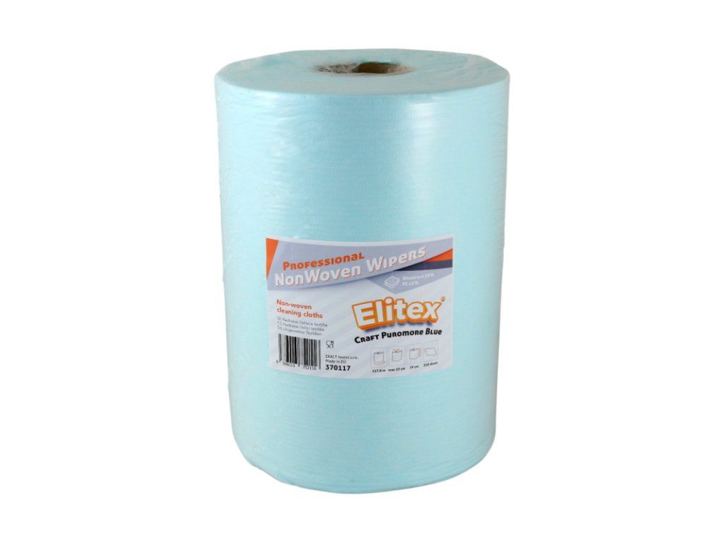 370117 – Utierka viacúčelová ELITEX Craft Puromore Blue, 117,8m (1ks) Viacúčelová, bezprašná, vysoko savá utierka, vyrobená z najkvalitnejších materiálov. Tkanina vyrobená z bavlny a polyetylénových vlákien. Použitie bavlnených vlákien zaisťuje veľmi dobrú absorpciu tekutín a veľmi nízku prašnosť. Použitie polyetylénových vlákien zlepšuje mechanickú pevnosť a zvyšuje absorpciu olejov, tukov a tukov. Je to univerzálna utierka, perfektná na miesta, kde je potrebná vysoká savosť a nízka prašnosť. Funguje perfektne s rozpúšťadlami. Neobsahuje obohacujúce prísady. Tyrkysová farba z nej robí látku s veľmi širokým spektrom použitia. Možnosť využitia aj stredového odvíjania. Tento produkt je certifikovaný a bezpečný na použitie na miestach spracovania a prípravy potravín. Počet vrstiev : jednovrstvové Materiál : netkaná textília Zloženie materiálu : 55%bavlna, 45%polyetylén Hmotnosť textílie : 68g/m2 Dĺžka kotúča (m) : 117,8 Šírka kotúča (mm) : 290 Priemer kotúča max (mm) : 230 Počet útržkov (ks) : 310 Balenie : 1 ksDodatočné parametre