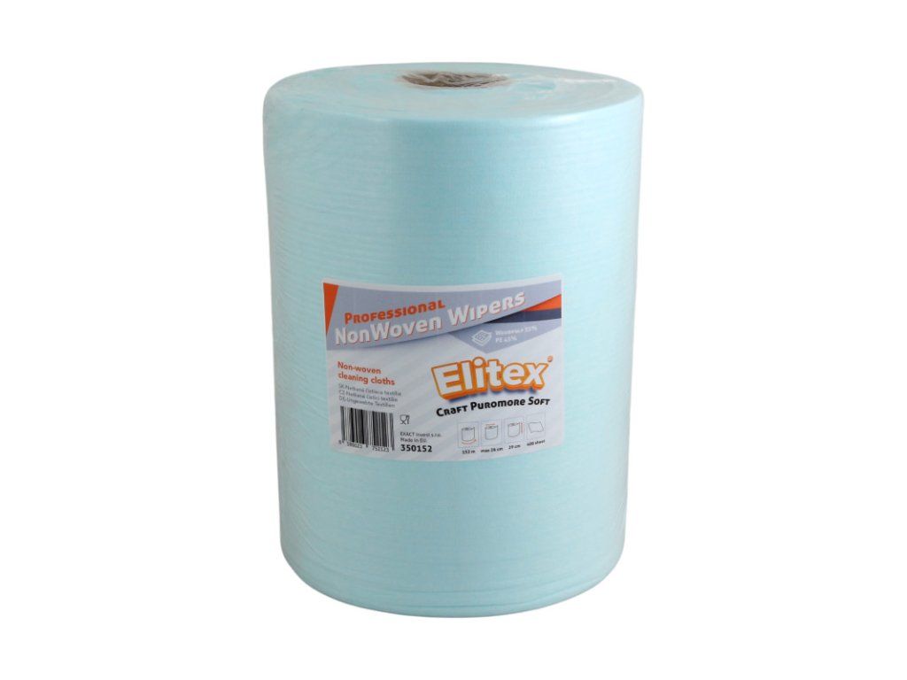 350152 – Utierka viacúčelová ELITEX Craft Puromore Blue Soft, 152m (1ks) Viacúčelová, bezprašná, vysoko savá utierka, vyrobená z najkvalitnejších materiálov. Tkanina vyrobená z bavlny a polyetylénových vlákien. Použitie bavlnených vlákien zaisťuje veľmi dobrú absorpciu tekutín a veľmi nízku prašnosť. Použitie polyetylénových vlákien zlepšuje mechanickú pevnosť a zvyšuje absorpciu olejov, tukov a tukov. Je to univerzálna utierka, perfektná na miesta, kde je potrebná vysoká savosť a nízka prašnosť. Funguje perfektne s rozpúšťadlami. Neobsahuje obohacujúce prísady. Tyrkysová farba z nej robí látku s veľmi širokým spektrom použitia. Možnosť využitia aj stredového odvíjania. Tento produkt je certifikovaný a bezpečný na použitie na miestach spracovania a prípravy potravín. Počet vrstiev : jednovrstvové Materiál : netkaná textília Zloženie materiálu : 55%bavlna, 45%polyetylén Hmotnosť textílie : 50g/m2 Dĺžka kotúča (m) : 152 Šírka kotúča (mm) : 290 Priemer kotúča max (mm) : 260 Počet útržkov (ks) : 400 Balenie : 1 ksDodatočné parametre