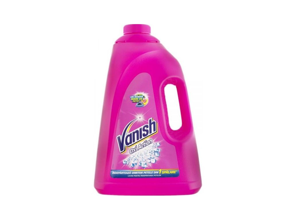 Odstraňovač škvŕn Vanish účinne odstraňuje špiny od čaju, kávy a vína. Neobsahuje chlór, a preto je šetrný k farbám a tkaninám. Pre dosiahnutie najlepších výsledkov nalejte Vanish priamo na škvrnu a zvyšok dávky pridajte do prania k praciemu prostriedku. 100ml na jedno pranie – nechajte pôsobiť maximálne 10 minút po aplikácií na škvrnu. Pre ručné pranie použite 100ml prípravku na 10l vody – doba pôsobenia maximálne 1 hodina. Vhodný na vlnu, hodváb a iné jemné a farebné tkaniny. Je účinný v studenej aj teplej vode. Nepoužívajte na kovové časti tkanín a odevov. Vyčistenú tkaninu nevystavujte priamemu slnku. Nádobu uchovávajte na chladnom mieste. Po použití si dôkladne umyte ruky. Obsahuje peroxid vodíka. Ak máte citlivú pokožku, používajte rukavice. Zabráňte kontaktu s očami. V prípade zasiahnutia, oči poriadne vypláchnite dostatočným množstvom vody. Uchovávajte mimo dosahu detí. Objem balenia 3L.Dodatočné parametre