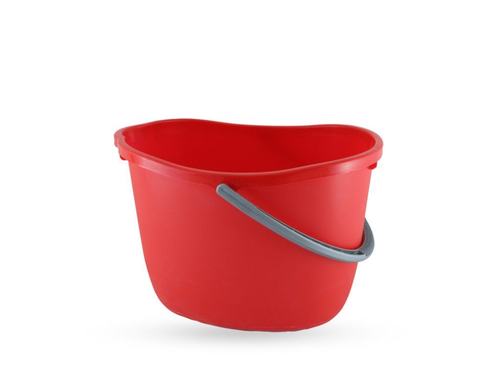 Plastové vedro oválne, s výlevkou, tvarovaná rukoväť, objem 15 l, červená farba.