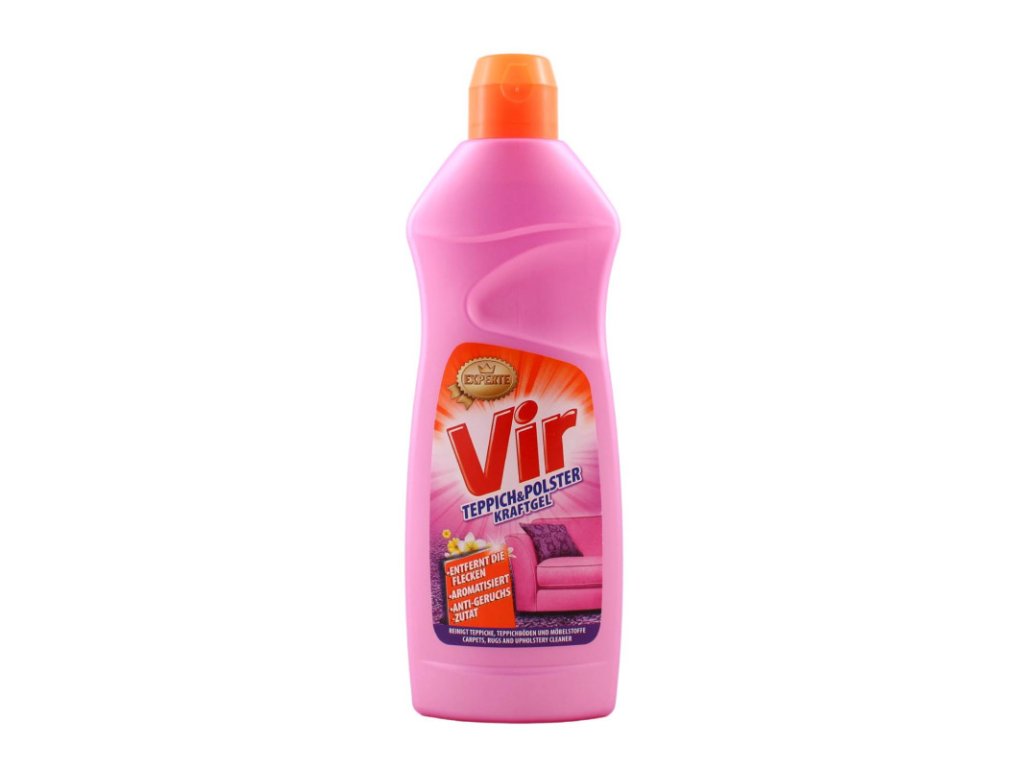 VIR EXPERT je na škvrny a odolné nečistoty na kobercoch a čalúnení. Koncentrovaný gél je veľmi účinný pri umývaní a čistení kobercov, čalúnenia a poťahov prírodných a umelých textílii. Pena preniká hlboko do tkanín a odborne odstraňuje odolné škvrny a nečistoty, rozjasňuje farby a zanechá príjemnú kvetinovú vôňu. VIR EXPERT je dokonalým riešením na dosiahnutie vynikajúcich výsledkov v domácej starostlivosti. Dávkovanie: 50ml čistiaceho prostriedku rozpustite v 2l vody – pre odolné škvrny a nečistoty pripravte roztok vyššej koncentrácie.