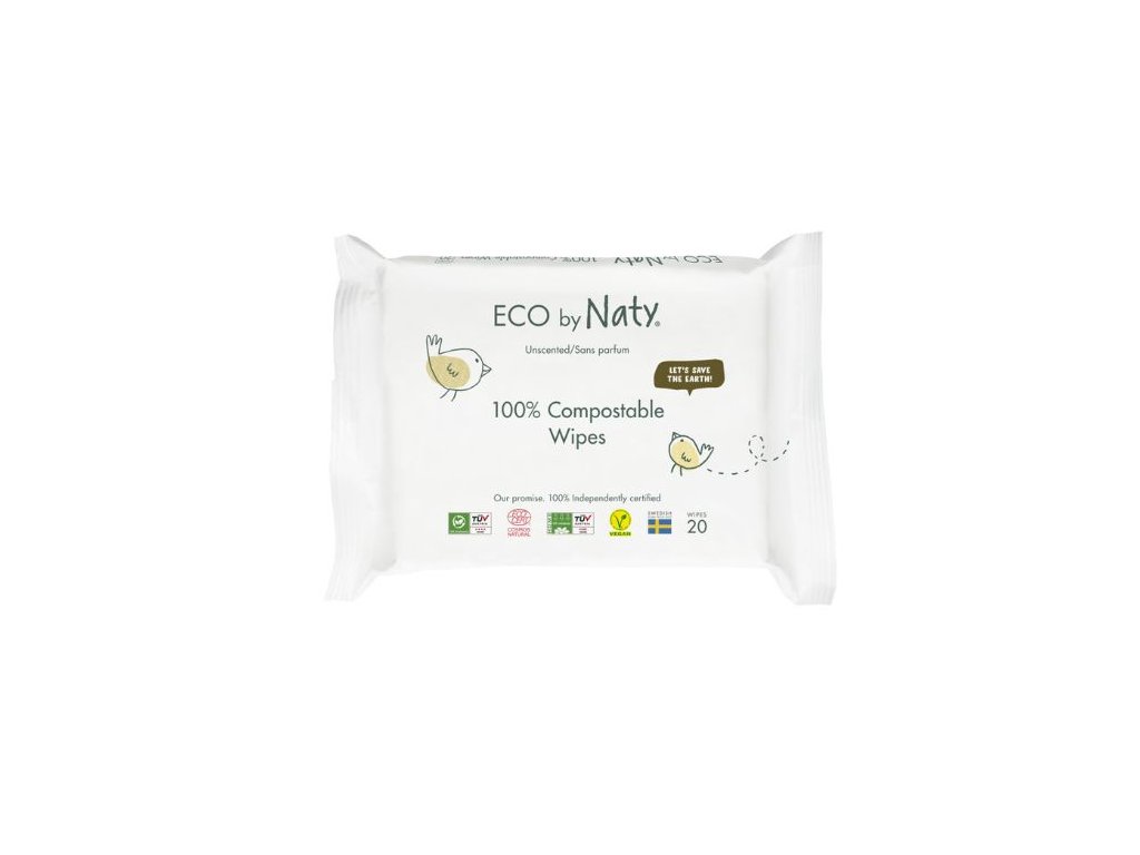 Vlhčené obrúsky ECO by Naty bez vône - pre citlivú pokožku 20ks Odporučené pre deti s citlivou pokožkou či ekzémom. Praktické cestovné balenie obsahuje 20 ks. Vyrobené zo 100% z prírodných materiálov, kompostovateľné.Obohatené o zjemňujúci výťažok z harmančeka.Bez obsahu chlóru, umelých parfémov a farbív, alkoholu, parabénov a ftalátov.Pôsobí preventívne proti zapareninám.Certifikované "OK Biobased" (Vincotte), čo potvrdzuje množstvo použitých obnoviteľných surovín vo výrobe.Dodatočné parametre