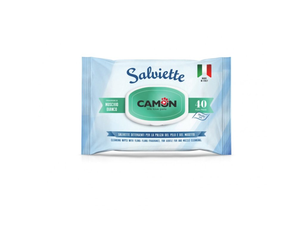 Vlhčené utierky na zvieratá Camon s vôňou bieleho pyžma 40ks