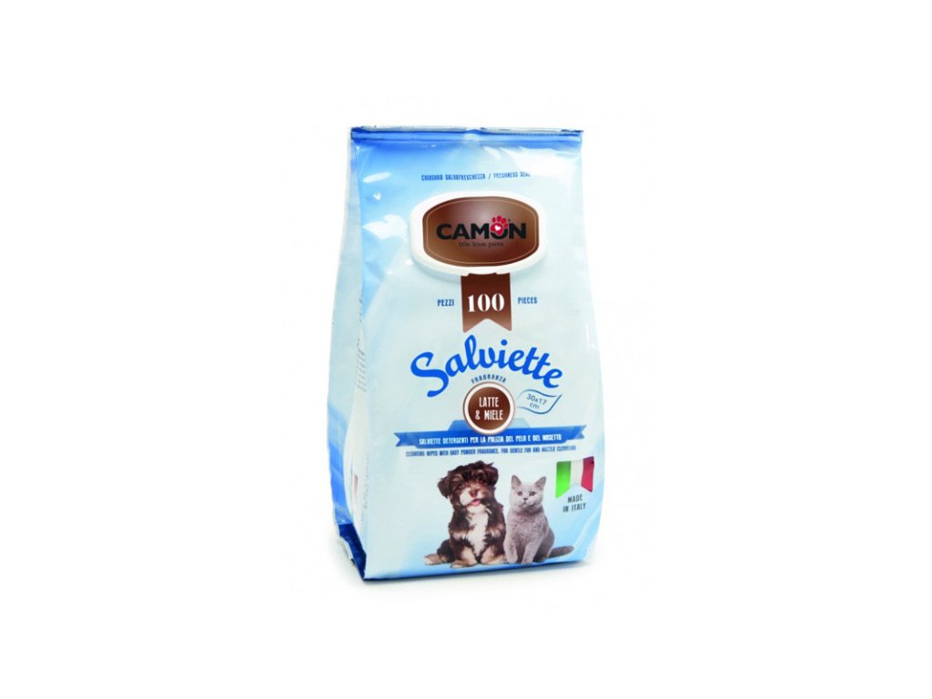 Vlhčené utierky na zvieratá Camon s vôňou mlieka a medu 100ks