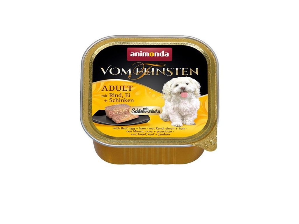 Vom Feinsten Adult - hovädzie s vajíčkom a šunkou predstavuje prísľub vynikajúcej, zdravej a vyváženej výživy pre dospelých psov vo veku od 1 roka života.Dodatočné parametre