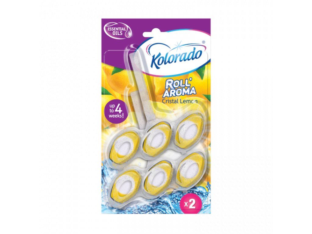 WC Blok Kolorado Fresh Toilet Krištáľový citrón 2x51g Trojfázový WC blok Bezfarebný, dizajnérsky košík Samostatné prvky pracujúce veľmi efektívne Bieliaci účinok v dôsledku obsahu aktívneho telenu Zabraňuje usádzaniu vodného kameňa Bohatá pena vďaka špeciálnym prísadám Mimoriadne silná a dlhotrvajúca aróma vďaka éterickým olejom Funkčnosť až 4 týždneDodatočné parametre