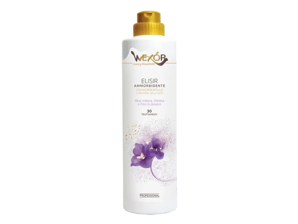 WEXOR Aviváž Indická ruža, fialka a zázvorový kvet je krásne voňajúca aviváž s mikrokapsulami a hodvábnymi proteínmi. Maximálna účinnosť aj pri nízkych dávkach, pohlcuje a eliminuje nepríjemné pachy, "velosoft" efekt chráni tkaniny. Uľahčuje žehlenie. Vďaka prírodným olejom a veľmi žiadaným surovinám bude Vaša bielizeň svieža a voňavá. Mikrokapsule poskytujú dlhodobú vôňu.