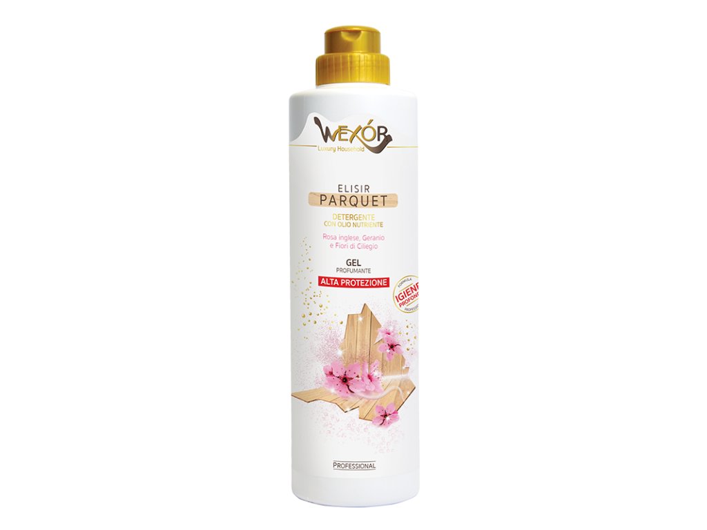 Wexór Parquet Elisir je dezinfekčný gélový čistič podláh špeciálne navrhnutý pre parketové podlahy. Jeho koncentrované gélové zloženie zaisťuje hĺbkové čistenie a dokonalý vzhľad. Výživný olej chráni ošetrené povrchy v priebehu času. Rafinované esencie anglickej ruže, pelargónie a čerešňového kvetu vytvárajú dlhotrvajúci, opojný účinok.