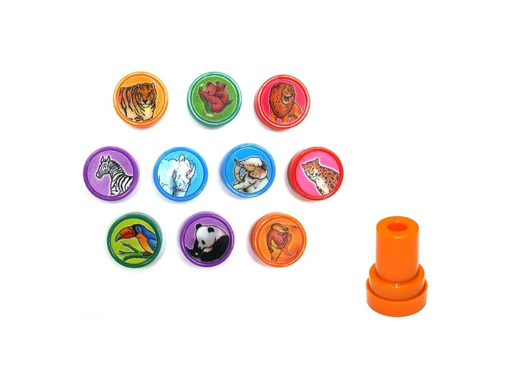 Detská samonamáčacia pečiatka z plastu – guľatá. – Nakresli si obrázok a vyzdob ho pečiatkami so zvieratkami! Samo-tlačiace pečiatky so zvieratkami sú ideálne pre všetky kreatívne deti, ktoré si rady maľujú. Na prednom obale je vždy vyobrazené určené zvieratko. Pečiatky sú v rôznych farbách. Určené pre deti od 3 do 6 rokov. Varovanie: Slúži ako výtvarná pomôcka na pečiatkovanie na papierov. Používať pod dozorom dospelej osoby! Obal odstráňte z dosahu detí! Uvedená cena je za 1 ks. Všetkých 48 ks je uložených v škatuľke.Dodatočné parametre