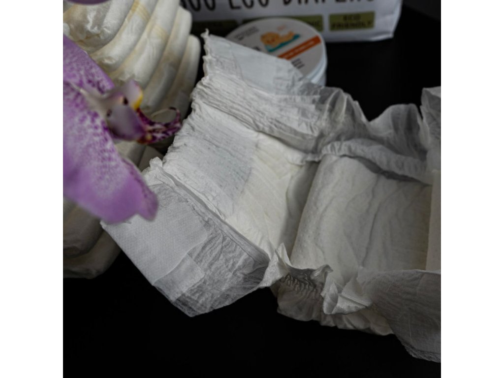 Rozhodovanie o správnych plienkach pre vaše dieťa je jedným z kľúčových krokov v oblasti starostlivosti o jeho pohodlie a bezpečnosť. Plienky Woopies ponúkajú vynikajúcu kombináciu pohodlia, bezpečnosti a šetrnosti k životnému prostrediu, čo ich robí ideálnou voľbou pre starostlivosť o vaše bábätko. S extra širokým a pružným opaskom, ktorý zaisťuje, že vaše dieťa nebude tlačené, a s vynikajúcou absorpčnou schopnosťou, ktorá udržiava pokožku suchú a zdravú, sú tieto plienky navrhnuté tak, že zabezpečujú maximálne pohodlie a ochranu. Plienky Woopies predstavujú dokonalú kombináciu funkčnosti a starostlivosti pre rodičov, ktorí hľadajú to najlepšie. Ich vonkajšia časť je vyrobená z príjemného a úplne biologicky odbúrateľného bambusu, s ochranným filmom z kukuričného škrobu. Vnútorná časť spája bambusové vlákna s inovatívnou membránou, udržiavajúc zadoček suchým. Výplň plienok je z biodegradovateľnej drevnej celulózy a obsahuje superabsorpčný japonský polymer, ktorý efektívne udržuje malé zadočky suché.