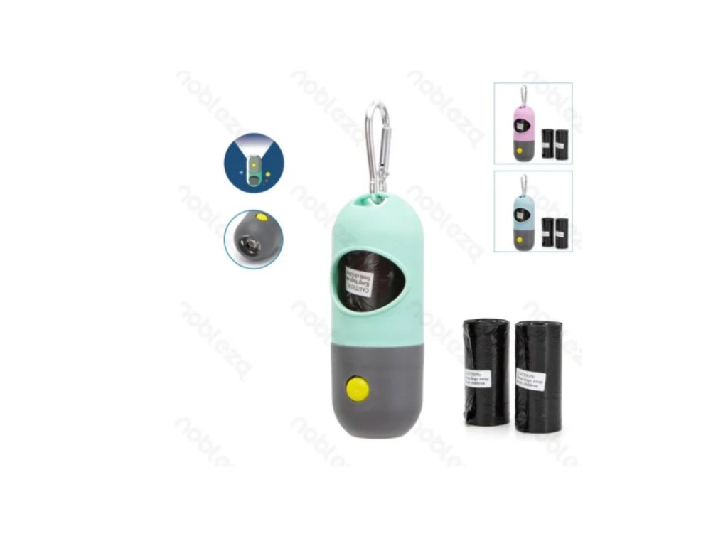 Zásobník na sáčky Nobleza s LED baterkou je praktický pomocník na prechádzky so psom. Plastové púzdro pastelovej farby v tvare baterky je nenápadné a zároveň praktické.Dodatočné parametre