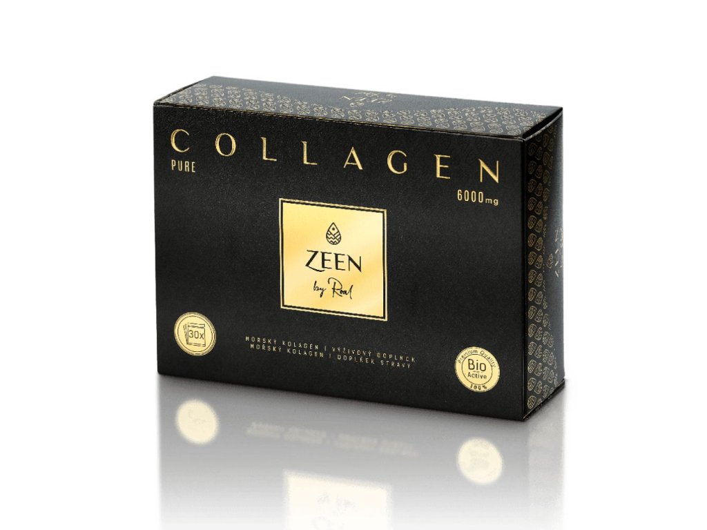 ZEEN COLLAGEN PURE 6 000 mg 30 dávok 6000 mg čistý morský BIO-AKTÍVNY hydrolyzovaný kolagén typu I,II a III. Kolagén je bez chemických prísad a je balený v praktických vrecúškach pre pohodlné dávkovanie. Kolagén je stavebnou zložkou pokožky, vlasov a nechtov, ktorá zabezpečuje hydratáciu a pružnosť. Prirodzená schopnosť produkcie kolagénu vekom klesá a časom sa úplne stráca. Doplnením kolagénu môžete zároveň zabrániť alebo zmierniť lámavosť vlasov, ako aj štiepenie nechtov. Napomáha kĺbom a chrupavkách pri opotrebovaní a poškodení, čo sa prejavuje nedostatočnou hybnosťou, bolesťou kĺbov, rednutím kostí, slabšou alebo zníženou chrupavkou. Vlastnosti morského kolagénu: ľahko rozpustný vo vody, obsahuje kolagén typu I, II a III, pomáha zlepšiť stav pokožky, znižuje lámavosť vlasov a štiepenie nechtov, pomáha vyhladiť vrásky a zlepšiť elasticitu pokožky, zosvetľuje pigmentové škvrny, vyživuje kĺby a chrupavky. Použitie Obsah 1 vrecúška nasypte do suchého pohára, pridajte cca 200 ml vody a poriadne premiešajte a pomaly vypite. Odporúčaná denná dávka 1 vrecúško. Upozornenie! Stanovená odporúčaná denná dávka sa nesmie presiahnuť! Výrobok nie je určený ako náhrada rozmanitej stravy. Skladujte mimo dosahu malých detí. Nevhodné pre deti, tehotné a dojčiace ženy. Skladujte pri teplote +4 až +25 °C, chráňte pred vlhkom, teplom a priamym slnečným žiarením.Dodatočné parametre