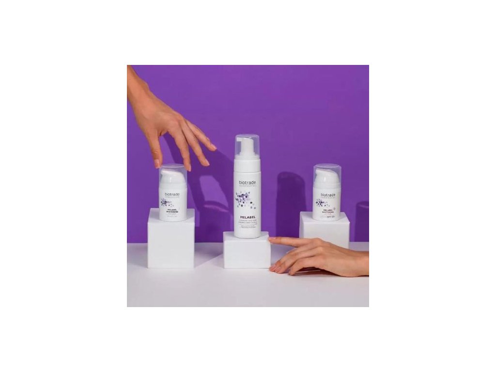 Zosvetľujúci denný krém na pleť s SPF 50+ Melabel Biotrade 50ml Denný krém určený na zosvetlenie tmavých škvŕn na pokožke ako je spálenie od slnka, starecké škvrny, škvrny po tehotenstve, akné a hormonálna terapia, jazvičky.Poskytuje širokospektrálnu UVA/UVB ochranu s SPF 50+, ktorá chráni pleť pred predčasným starnutím a opakujúcimi sa pigmentáciami. Obsahuje kyselinu fytovú, ktorá stimuluje syntézu kolagénu a vyrovnáva tón pleti. Rýchlo a ľahko sa vstrebáva bez zanechania mastných stôp. Ideálny základ pre každodenný make-up. Aktívne látky: kyselina fytová – blokuje melanogenézu (tvorbu melanínového pigmentu), stimuluje fibroblasty (kožné bunky) a vykazuje vynikajúci profil kožnej tolerancie, vitamín C – antioxidant, blokuje prenos melanínu z melanocytov do epidermálnych buniek, kyselina kojová – má bieliaci účinok, blokuje nadprodukciu melanínového pigmentu a pomáha ho rovnomerne rozložiť na povrchu pokožky, filtre na ochranu pred slnkom – 2 fyzikálne a 3 chemické. Denný krém je nekomedogénny. Krém je určený aj ako ochrana pred slnkom vhodná na každú sezónu. Priaznivé účinky: jemný zosvetľujúci efekt, vyrovnáva a zlepšuje celkový vzhľad pleti, veľmi vysoká UVA/UVB ochrana (SPF 50+), chráni pred opakujúcou sa pigmentáciou a fotostarnutím, ideálny základ pod make-up, dopĺňa účinok produktov intenzívnej depigmentačnej starostlivosti z radu Melabel. Zosvetľujúci denný krém zosilňuje účinok produktov aktívnej starostlivosti Melabel na zosvetlenie pokožky používaných pri večernej rutine. Denný krém je však možné použiť aj samostatne – hydratuje pokožku a poskytuje spoľahlivú širokospektrálnu ochranu pred slnkom. Použitie Aplikujte ráno na čistú pleť na celú tvár, vyhnite sa oblasti okolo očí. Ak trávite dlhší čas vonku, aplikujte znova každé 2-3 hodiny. Upozornenie Počas používania bieliacich prípravkov by ste nemali používať krémy obsahujúce Retin A a deriváty vitamínu A. Ak je vaša pokožka citlivejšia, môžete pocítiť jemné brnenie a/alebo pálenie, ktoré rýchlo prechádza.Dodatočné parametre