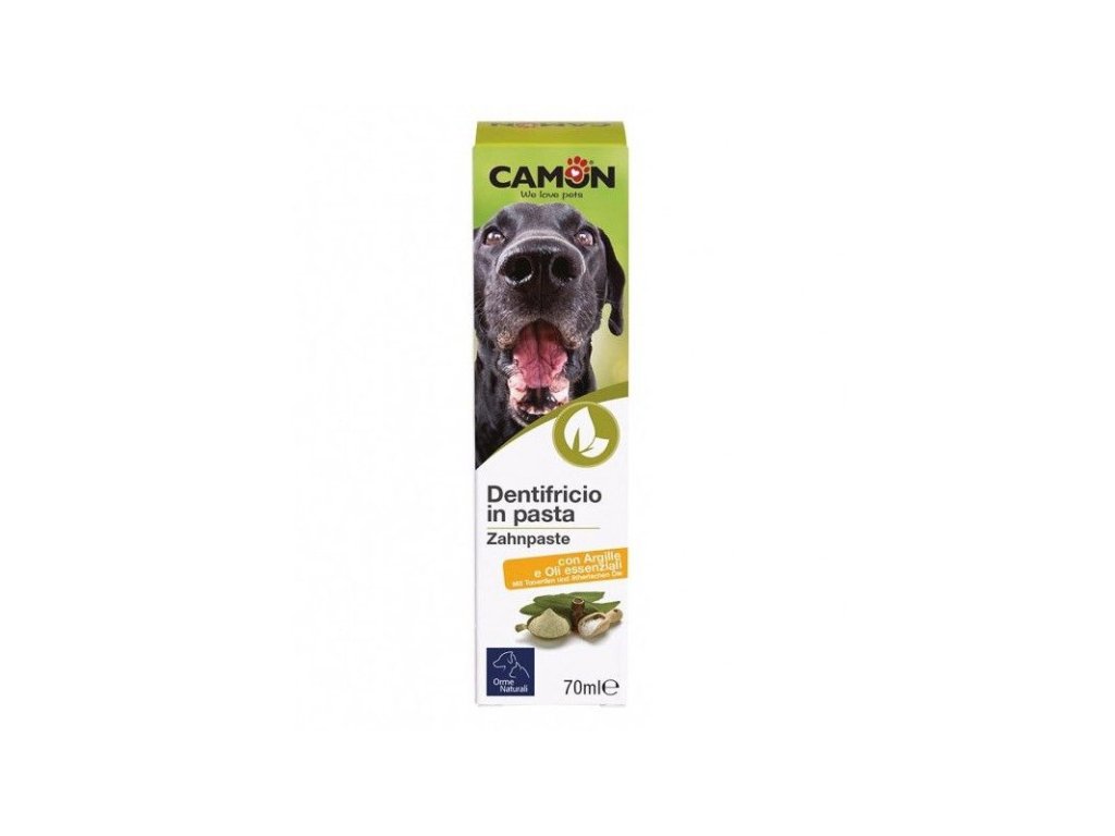 Zubná pasta Camon s výťažkami z bahna a esenciálnymi olejmi je určená na každodennú dentálnu hygienu psov.Dodatočné parametre